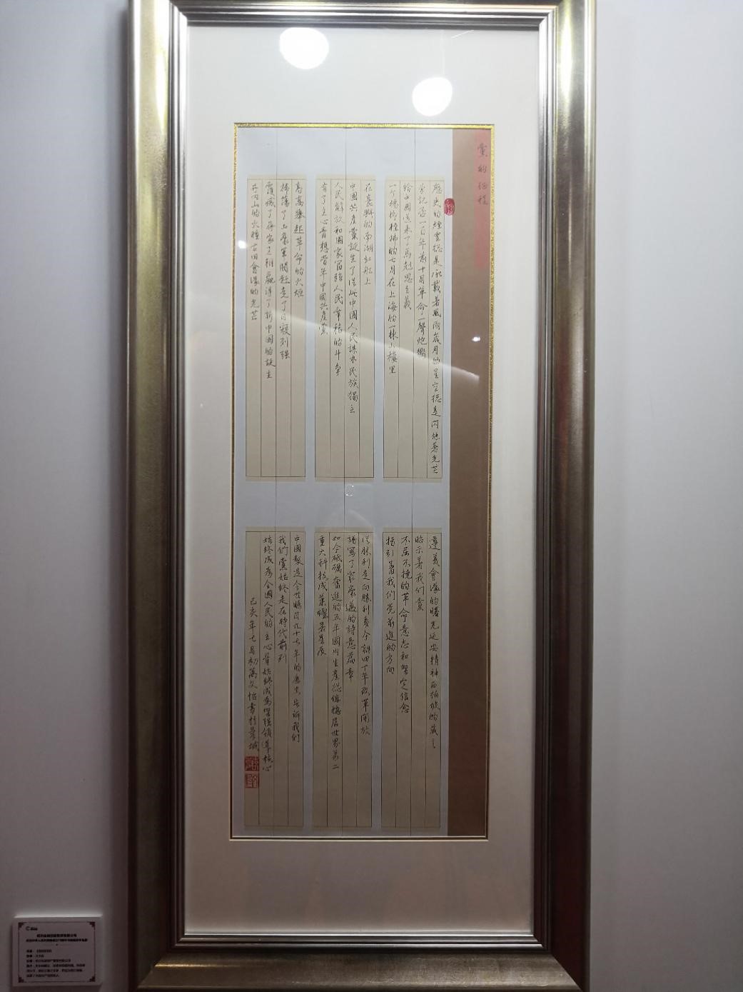 在“慶祝中華人民共和國成立70周年書畫攝影作品展”上,資管公司共選送了18件作品參賽,經(jīng)過專業(yè)評委評選,其中六件作品獲得名次,尤其是投資銀行部萬文怡的書法參賽作品《黨的征程》獲書畫類一等獎。