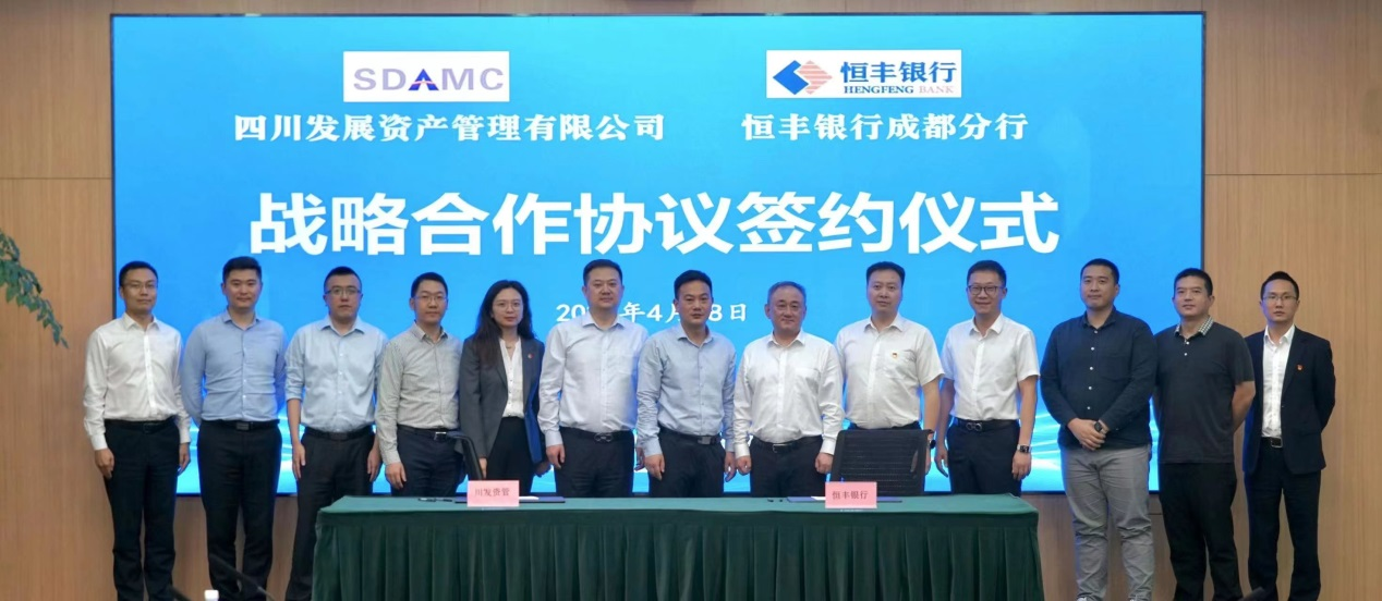 4月28日,恒豐銀行成都分行黨委書記、行長(zhǎng)張文堯一行,赴四川金控集團(tuán)旗下四川發(fā)展資產(chǎn)管理有限公司簽訂“川發(fā)資管戰(zhàn)略合作協(xié)議”,開啟雙方資源共享、優(yōu)勢(shì)互補(bǔ)、共駐共建、共謀發(fā)展新篇章。