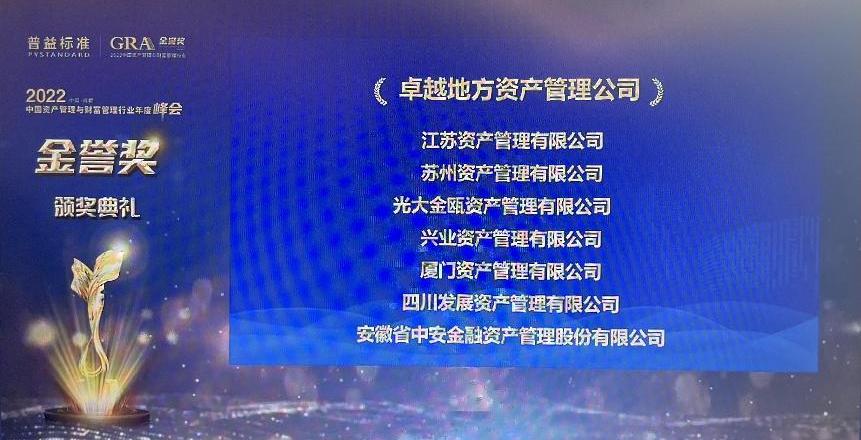 下午4點50分,2022第二屆中國資產(chǎn)管理與財富管理行業(yè)“金譽獎”評選結(jié)果正式揭曉。四川發(fā)展資產(chǎn)管理公司榮膺2022中國資產(chǎn)管理與財富管理行業(yè)年度峰會暨第二屆“金譽獎”卓越資產(chǎn)管理公司和卓越創(chuàng)新資產(chǎn)管理公司兩項大獎。